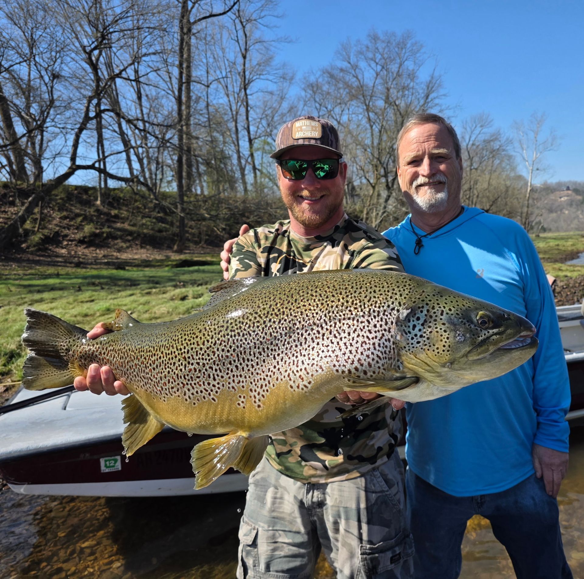 The White River record Brown Trout was caught from the river bank at Rainbow Drive Resort on February 27, 2015 by Calvin Johnston.